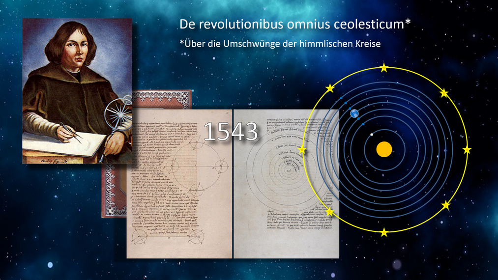 Das Offensichtliche ist nicht immer die Wahrheit. Offensichtlich war, dass sich die Himmelskörper um die Erde bewegen. Kopernikus erkannte aber, dass sich die Erde um sich selbst dreht und deshalb die Sterne und die Sonne über den Himmel der Erde ziehen und während ihrer Eigendrehung, wie alle anderen Planeten eben auch, ihre eigene Bahn um die Sonne zieht. Die Sonne und die Sterne bleiben an Ort und Stelle und bewegen sich nicht. Bleibt noch anzumerken, dass Kopernikus in seinem Modell auch nicht auf Epizykel verzichten konnte. Damit erklärte er die beobachteten zu- und abnehmenden Bahngeschwindigkeiten der einzelnen Planeten.